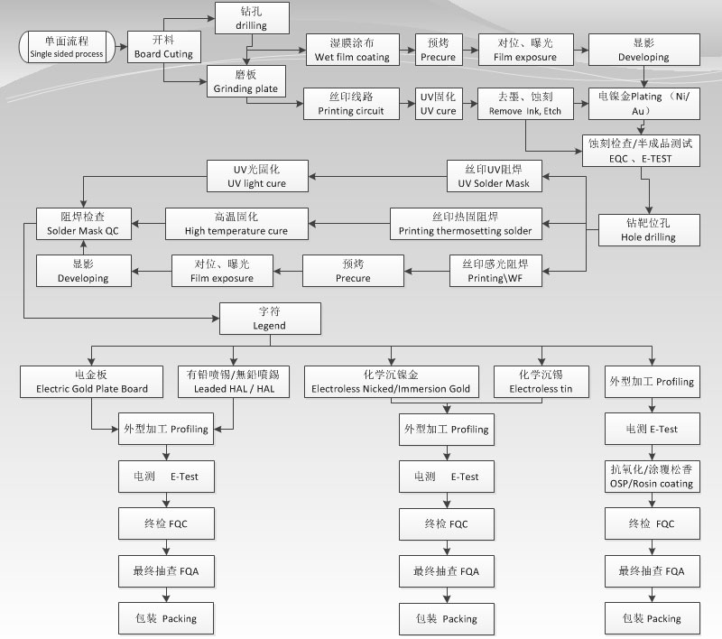| 單面工(gōng)藝流程圖 |