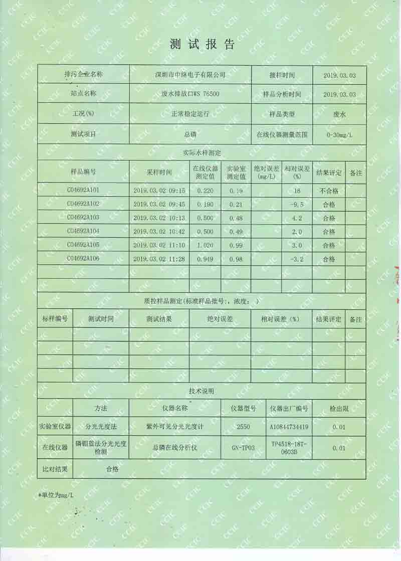 | 廢水(shuǐ)污染源自(zì)動監測設備比對(duì)監測報(bào)告3.10① |