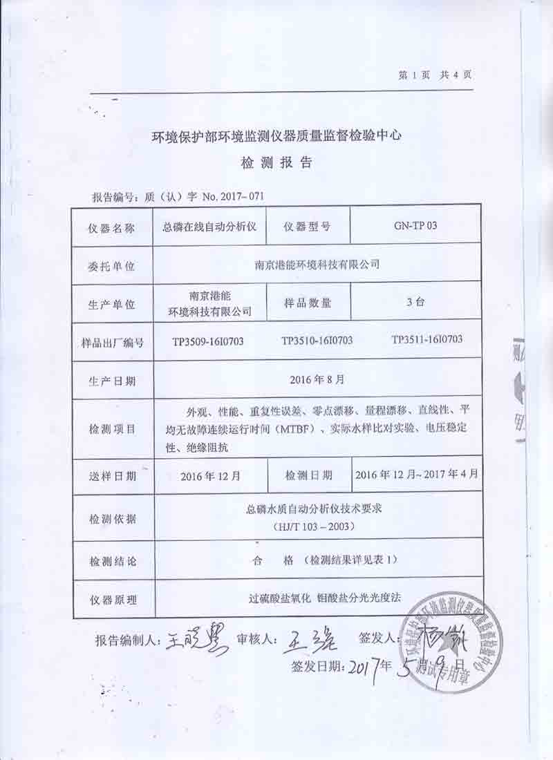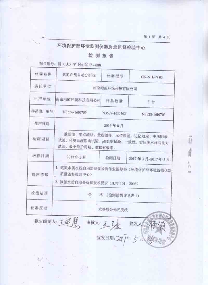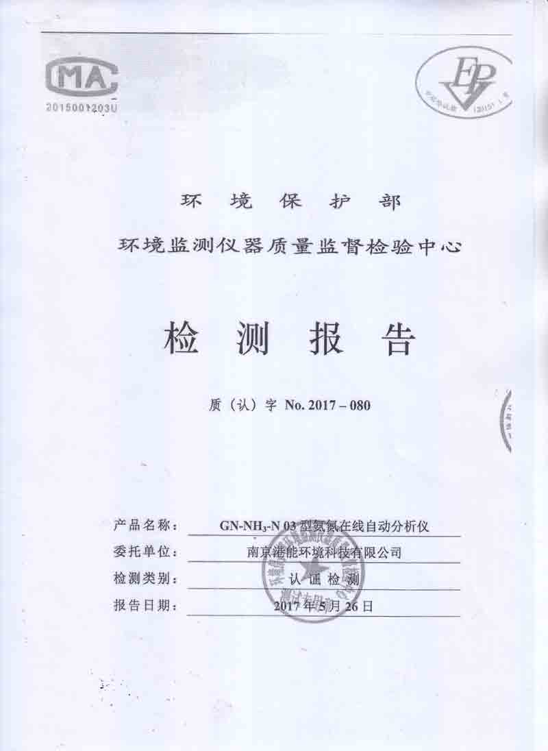 | 環境監測儀器(qì)質量監督監測中心檢測報(bào)告 |