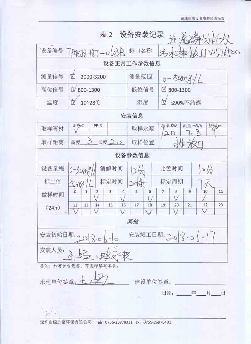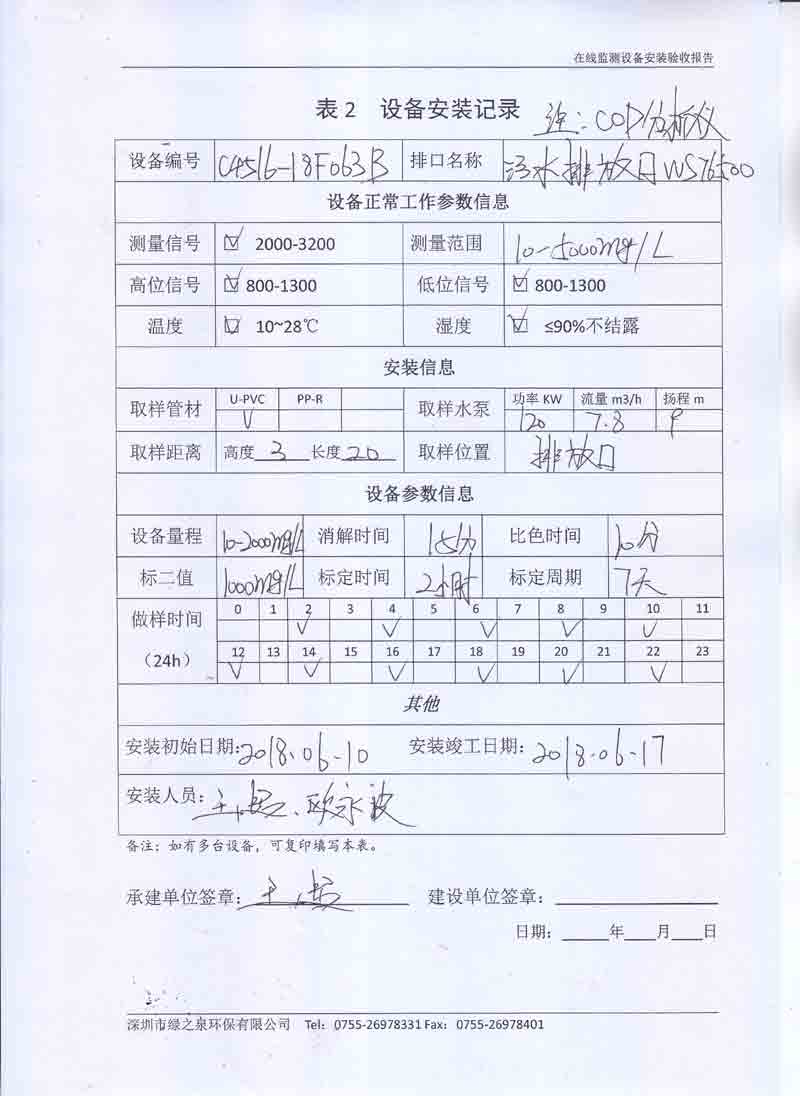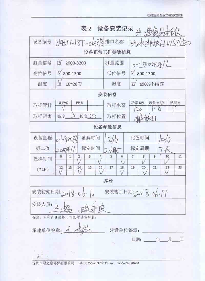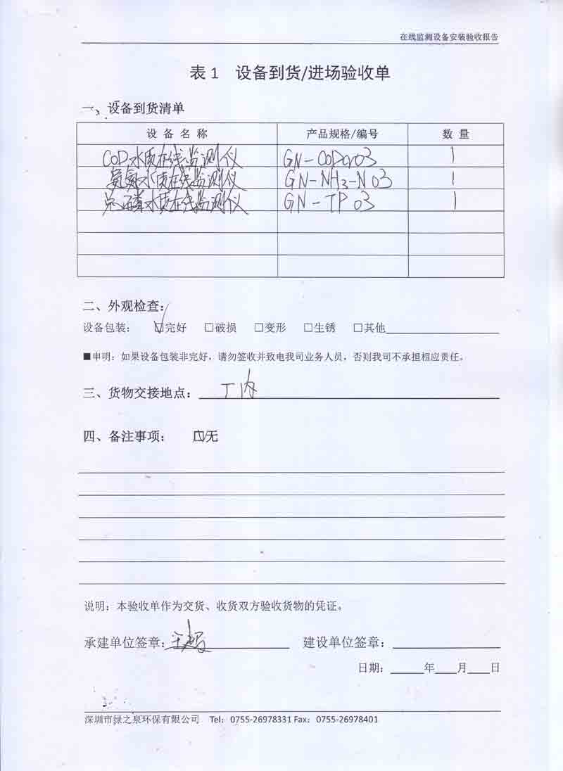 | 在線監測設備安裝調試驗收報(bào)告 |