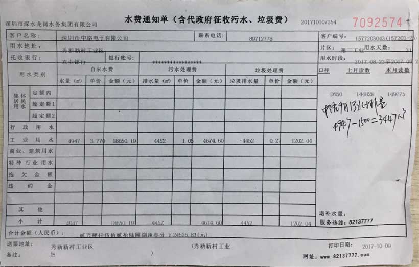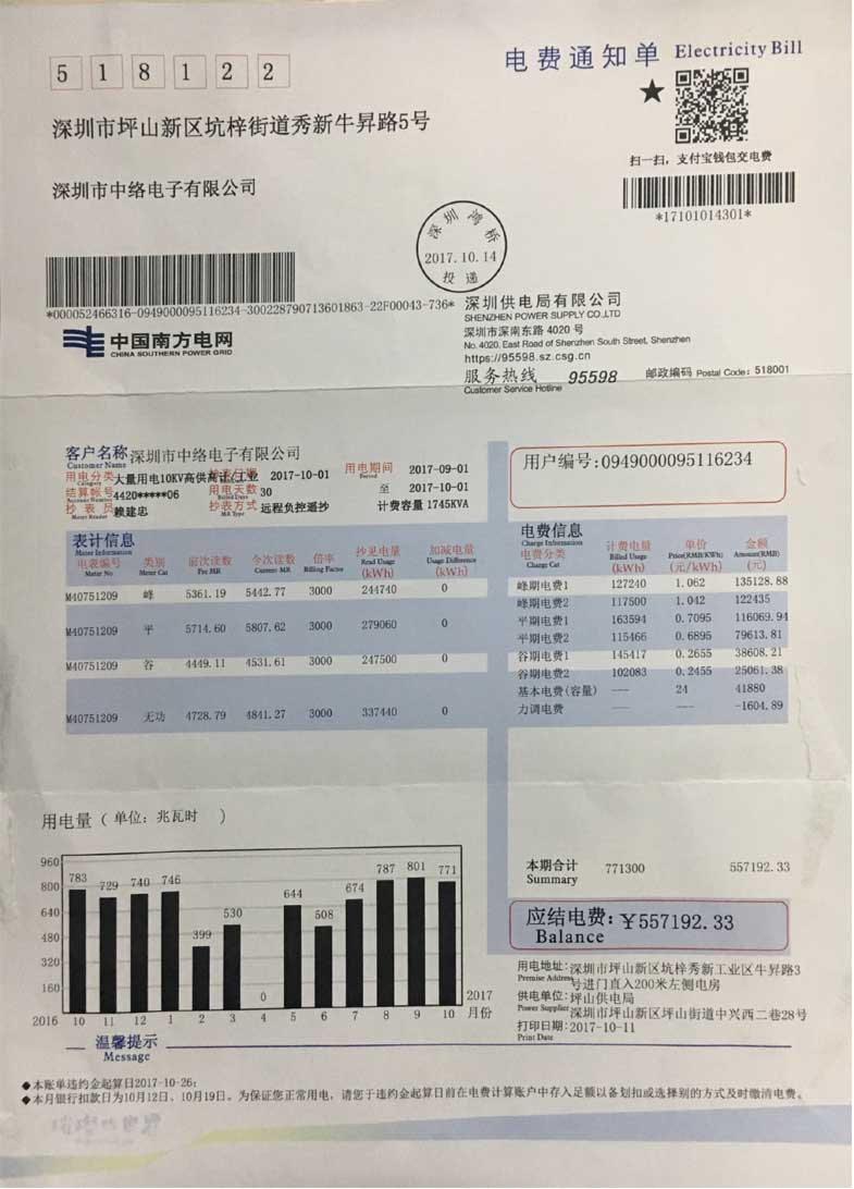 | 2017年(nián)9月(yuè)水(shuǐ)電(diàn)單 | ||